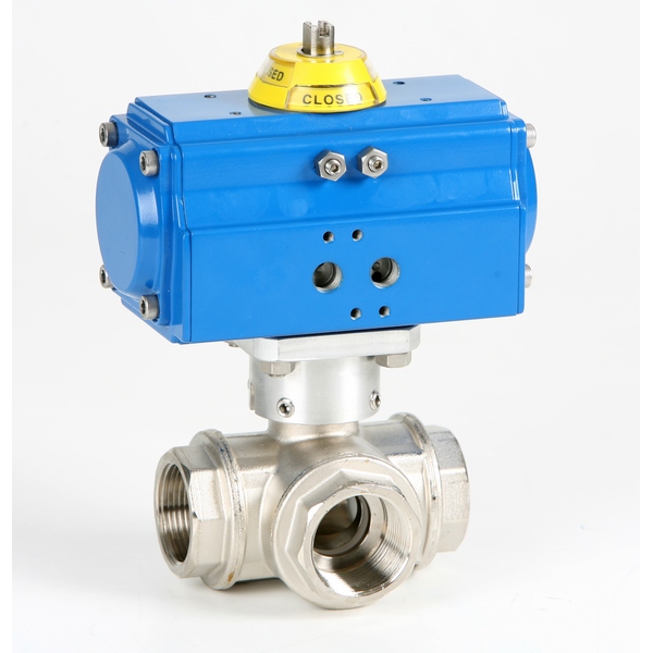 | 508007 | Čelična trokraka navojna inox slavina „T“ tip sa pneumatskim pogonom | Dim-1 1/4" |