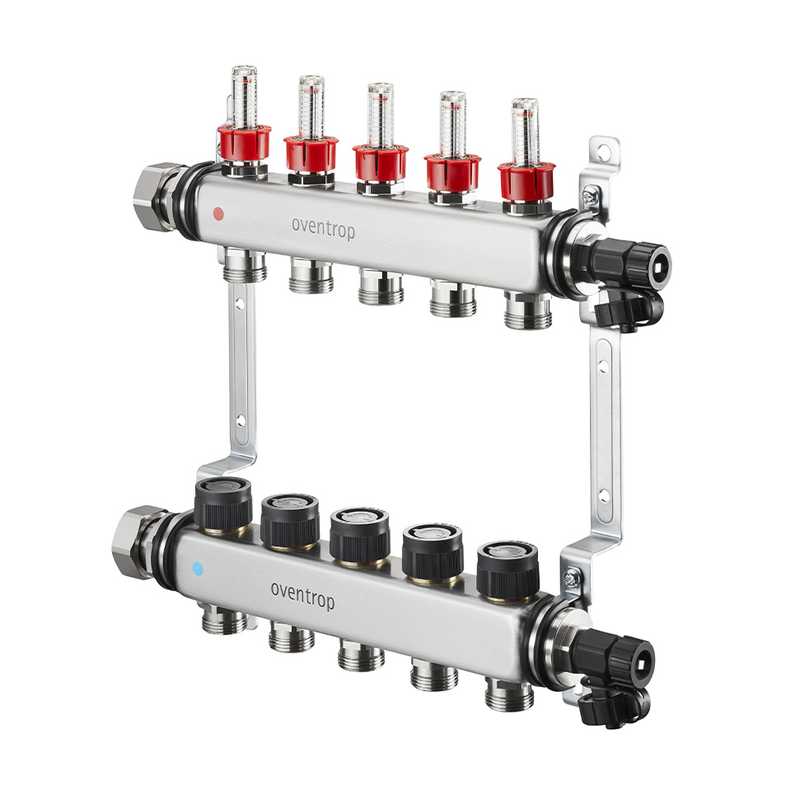 Distributer protokola je opremljen integrisanim uređajima za merenje i regulaciju protokola ili sa jednostavnim regulacionim umetcima. Povratni kolektor je opremljen ventilskim umetcima sa uključenim navojem M 30 k 1,5 za povezivanje opcionih aktuatora. Oni su fabrički opremljeni zaštitnim poklopcem, koji se takođe može koristiti za privremeno isključenje kruga grejanja.