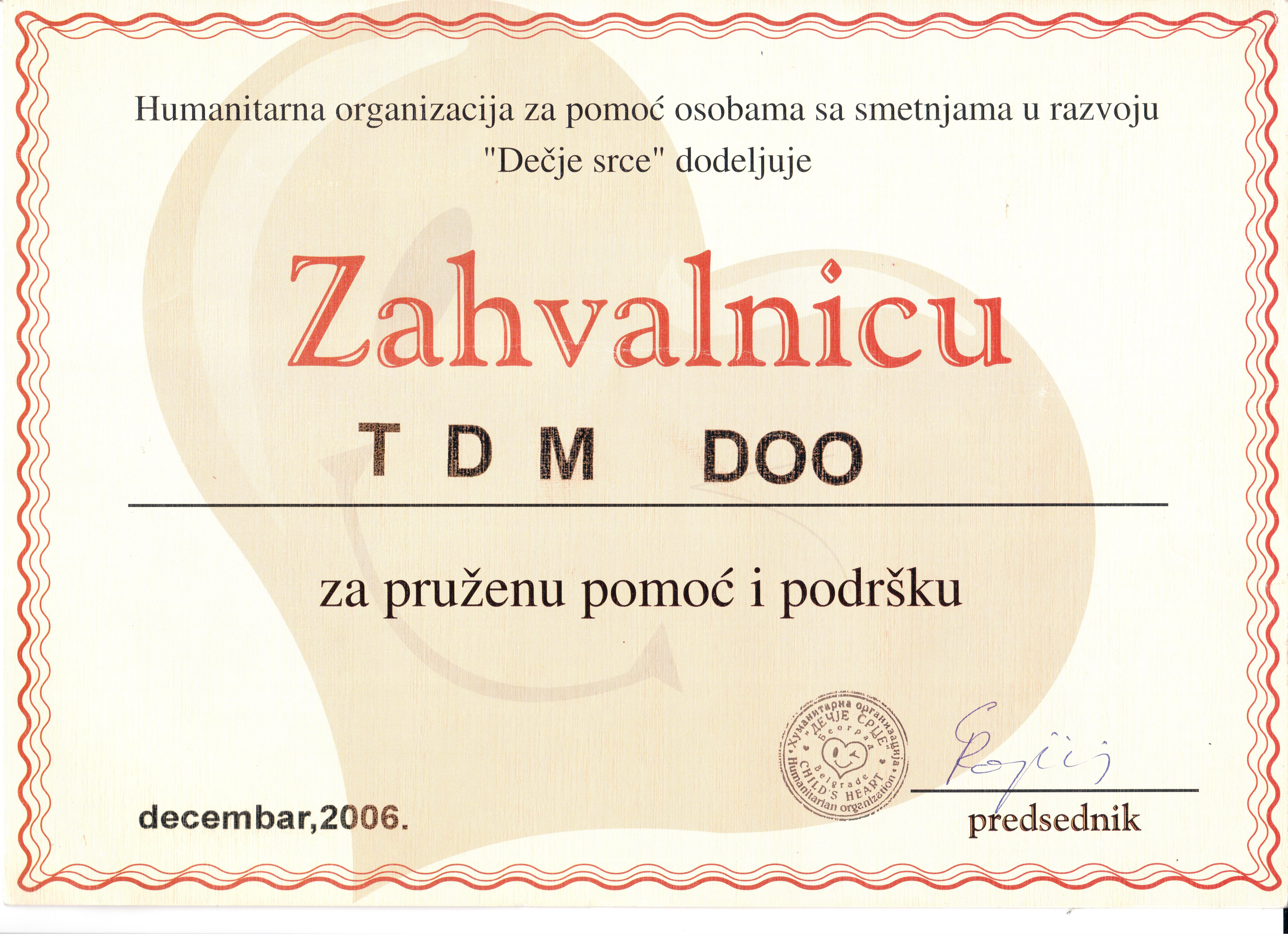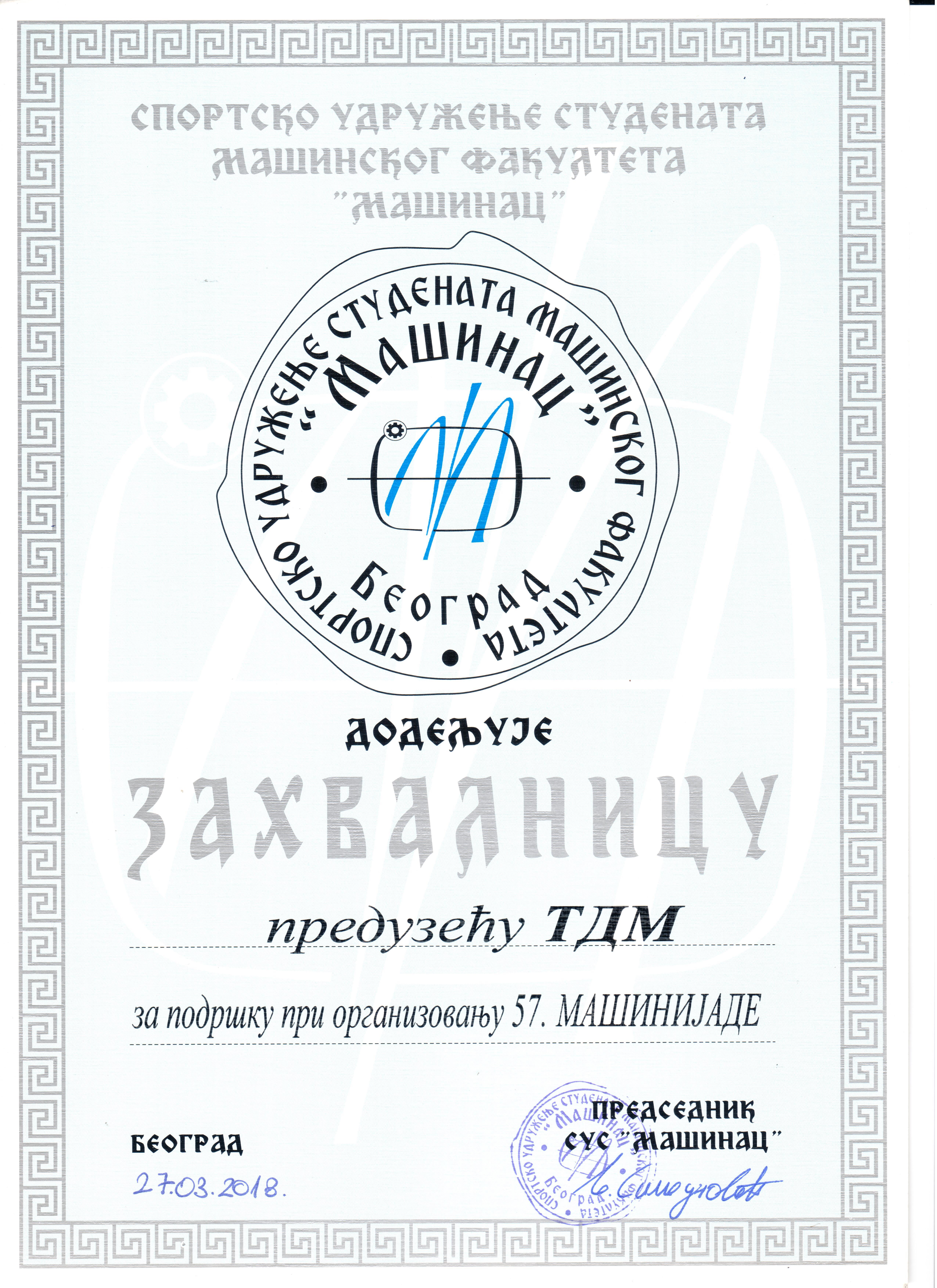 TDM poslednjih 9 godina godina za redom posluje sa najvišim AAA kreditnim rejtingom procenjenim od strane renomirane kuće Dun & Bradstreet i nosioci smo njihovog Platinastog sertifikata, što najbolje govori o kvalitetu našeg rada.