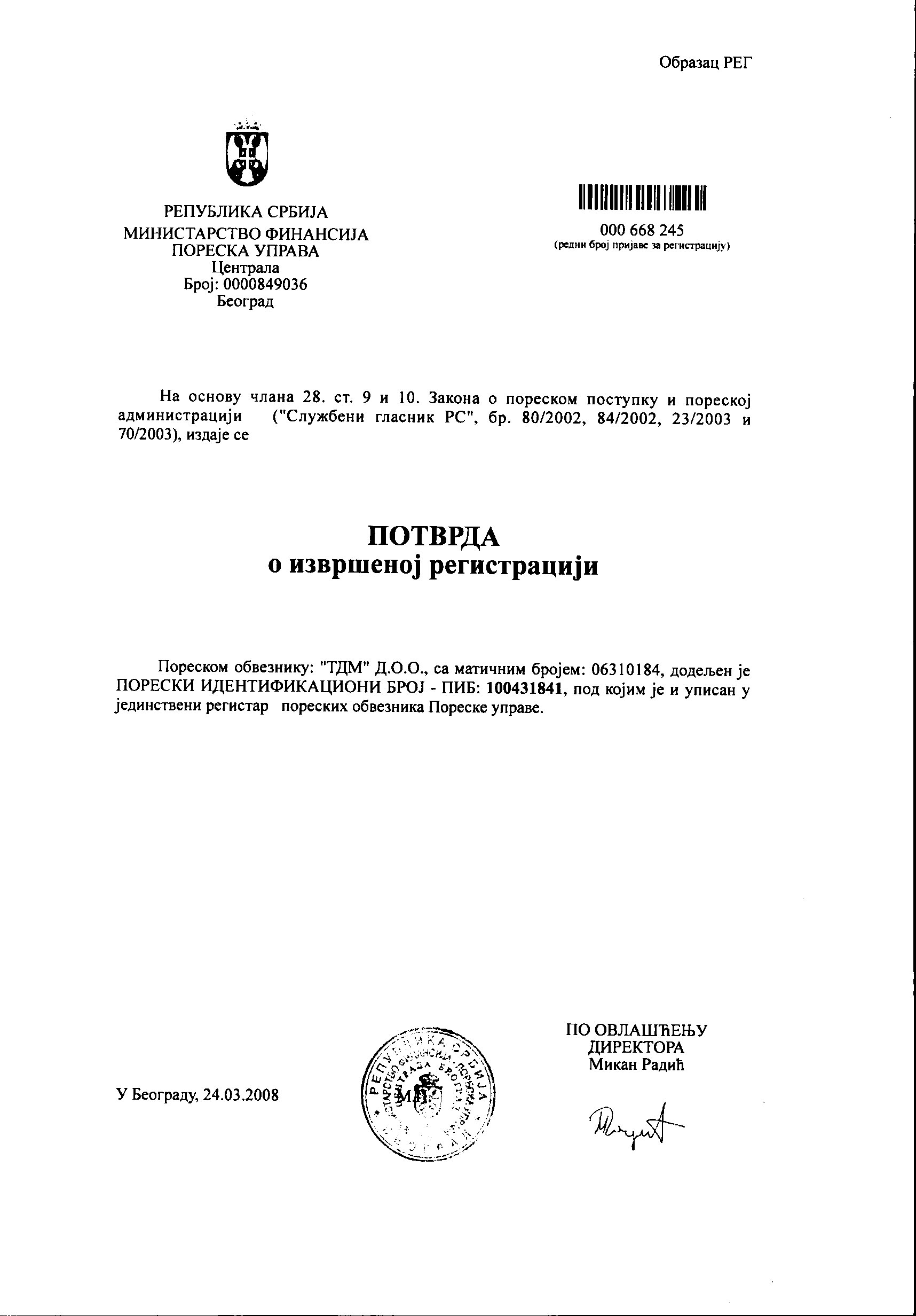 PDV registarski broj: 134024903